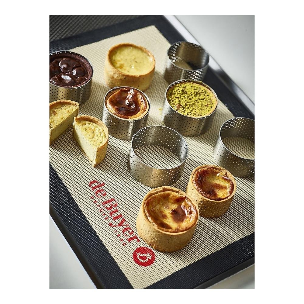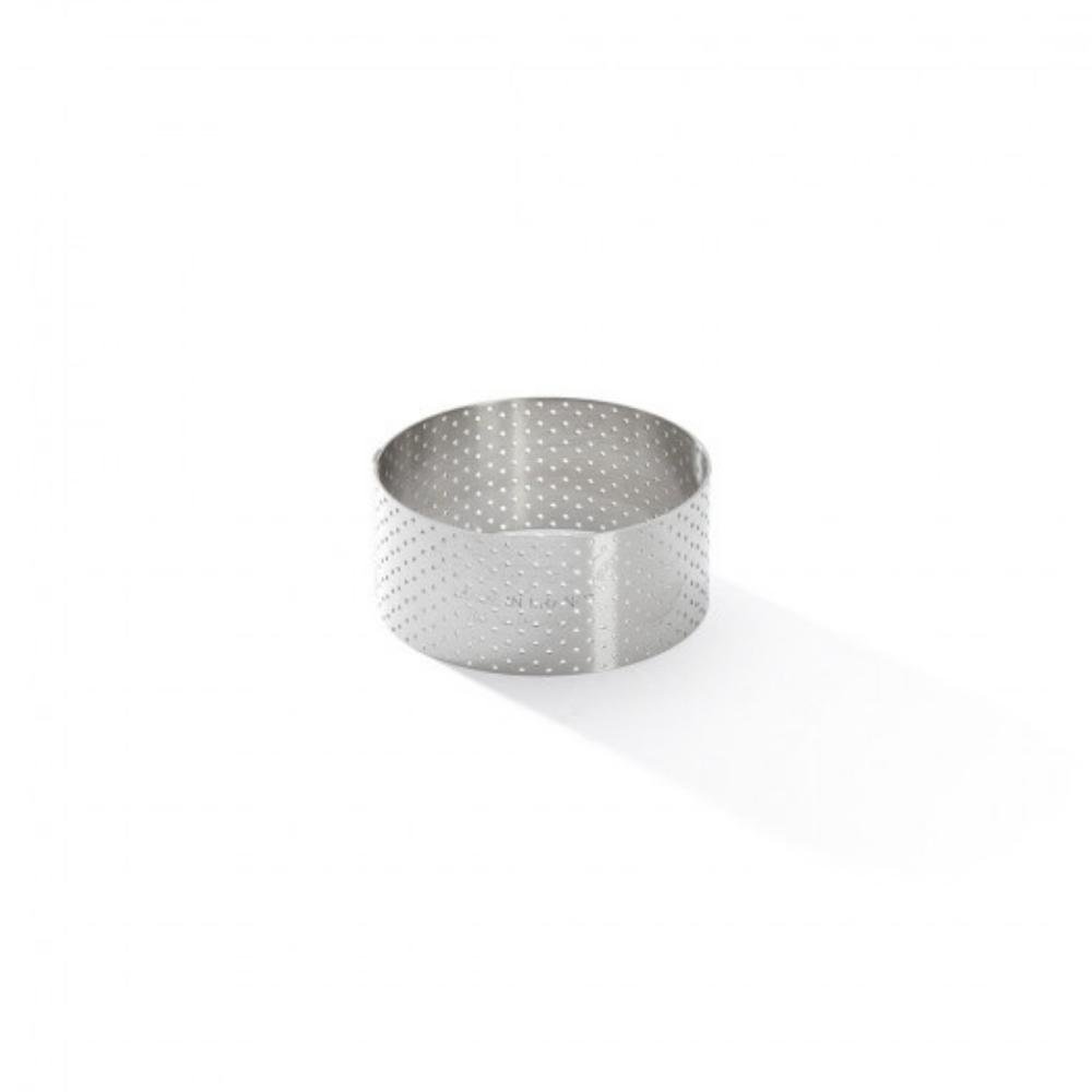 Anel para torta redondo perfurado em aço inoxidável ideal para tortas, tortinhas, bolos e quiches.