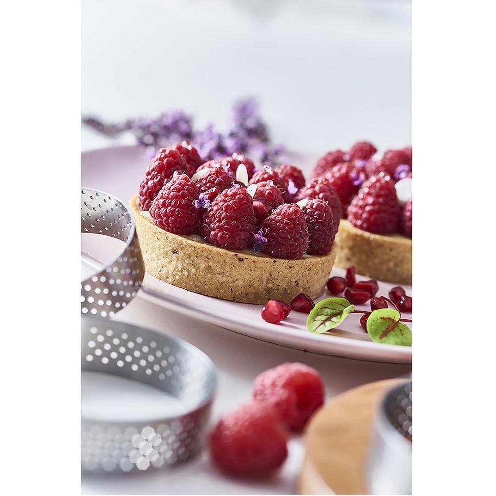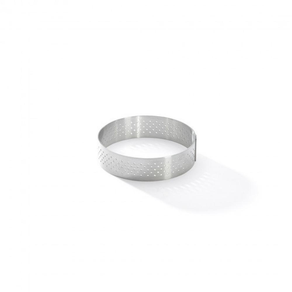 Anel para torta redondo perfurado em aço inoxidável ideal para tortas, tortinhas, bolos e quiches.