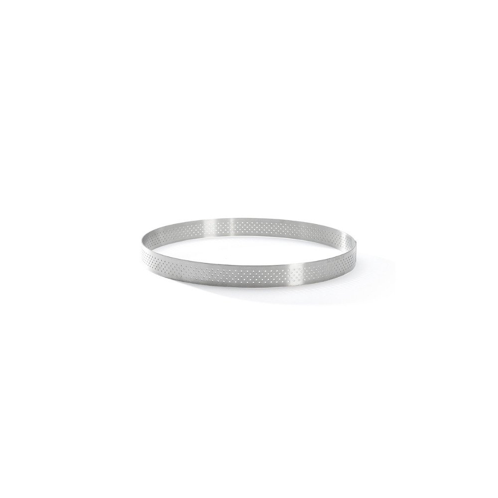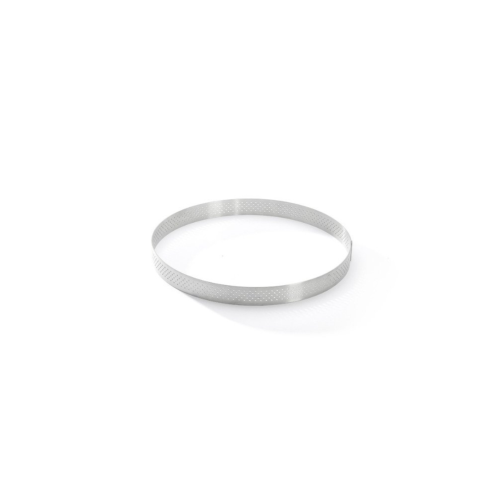Anel para torta redondo perfurado em aço inoxidável ideal para tortas, tortinhas, bolos e quiches.