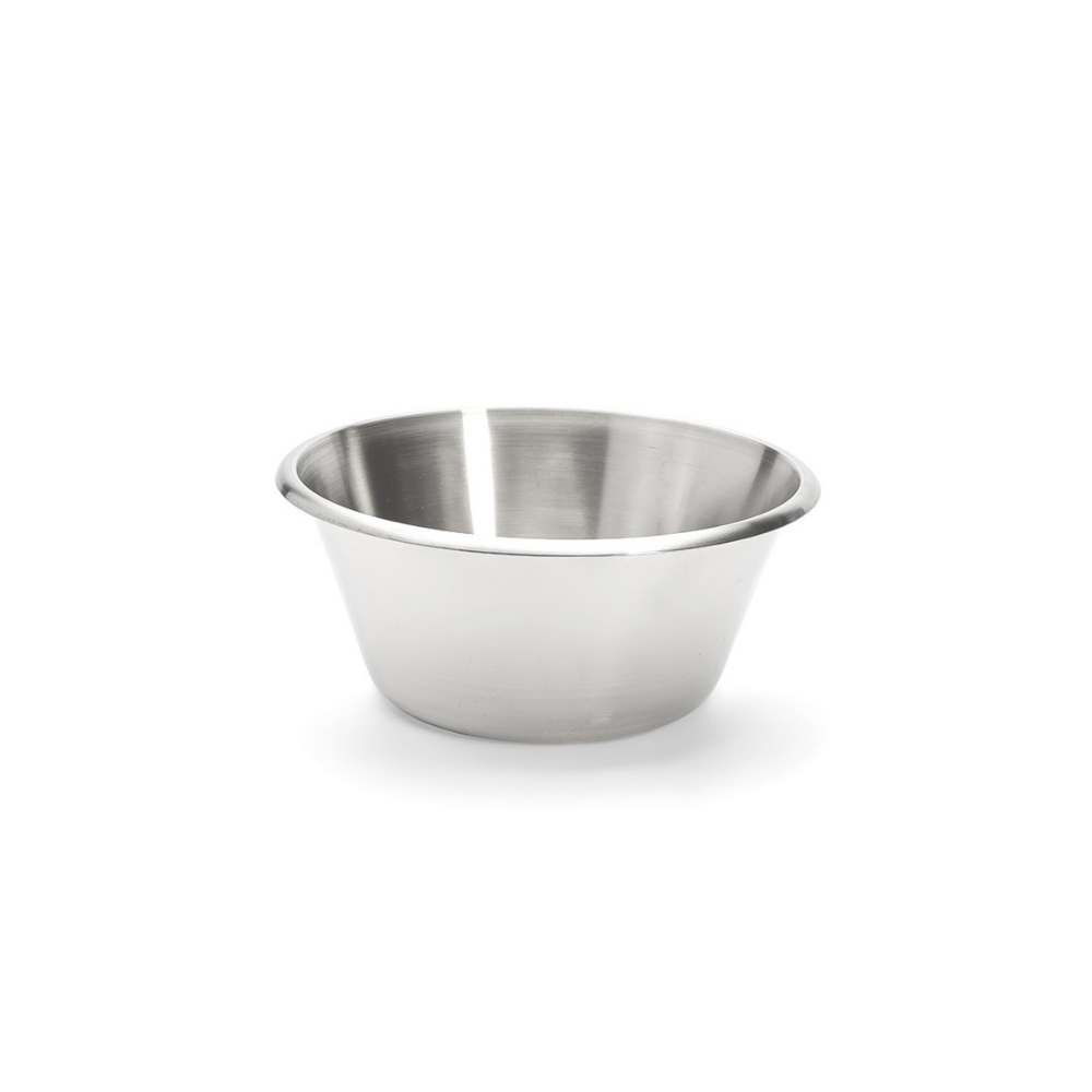 Bacia cónica inoxidável utilizada para fazer misturas, bater, aquecer em banho-maria, para guardar uma preparação ou
