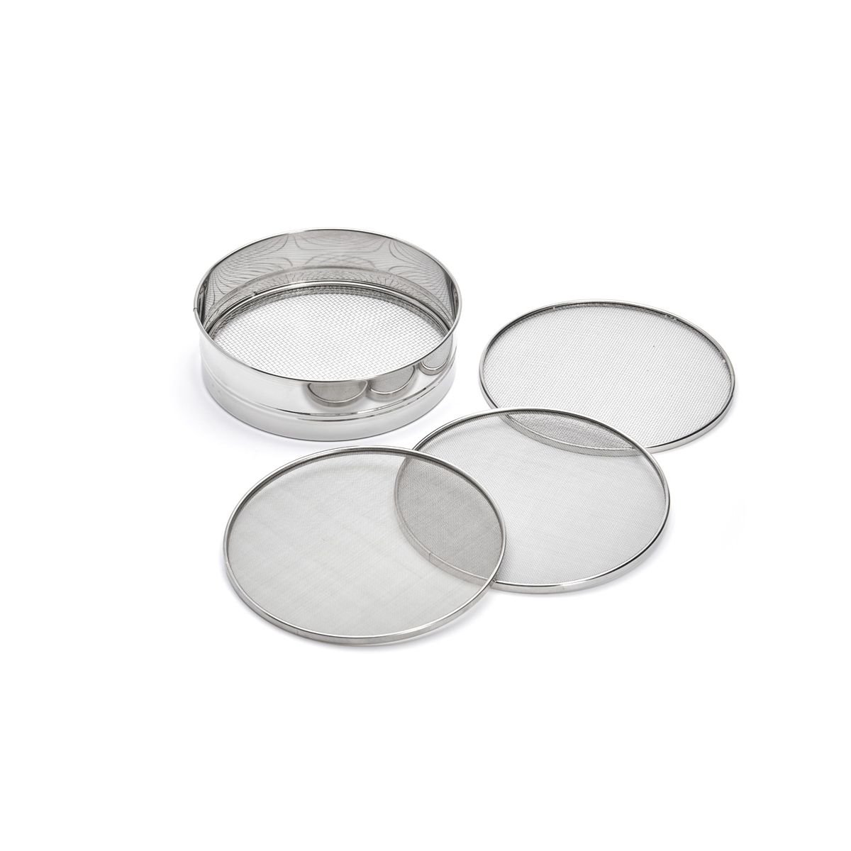 Peneira profissional inteiramente em aço inoxidável, ideal para peneirar finamente a farinha antes de adicioná-la à mistura para evitar a formação de grumos