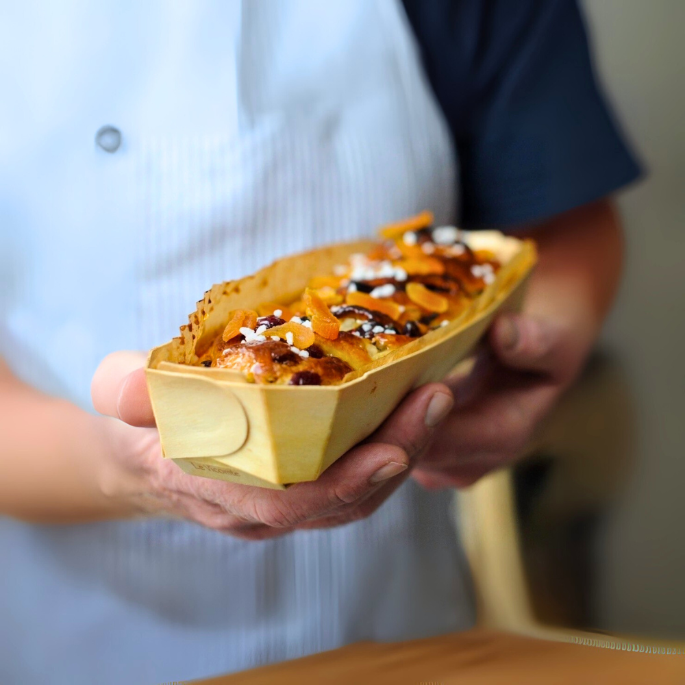 Característico por sua forma alongada, o modelo Vicomte é um recipiente que harmoniza com nossas baguettes. É o numero um para a confecção de viennoises e aperitivos. Serve igualmente para a apresentação de sanduíches.